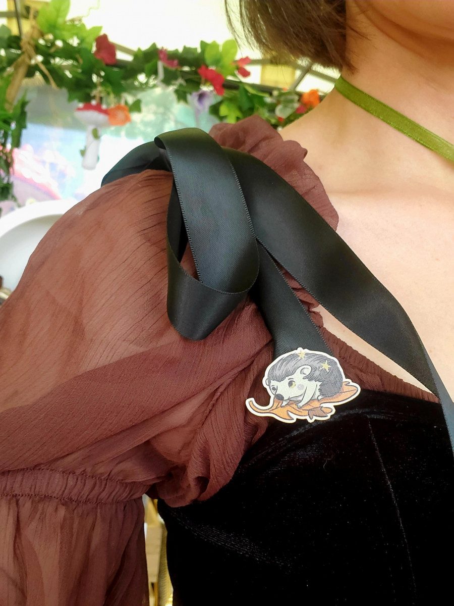 Broche en bois illustrée hérisson, pour accompagner ta meilleure veste ou ta plus belle robe witchy.