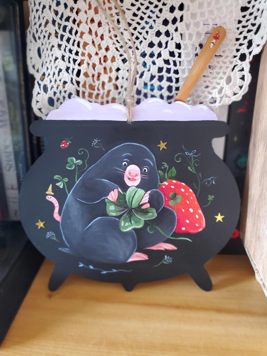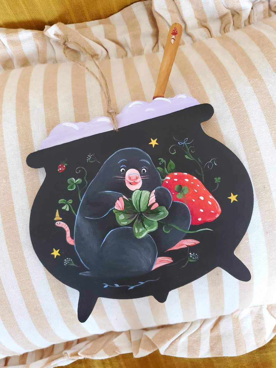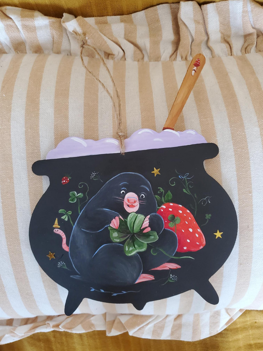 Décoration peinture sur bois taupe à accrocher, acrylique, 15 cm environ, pièce unique.