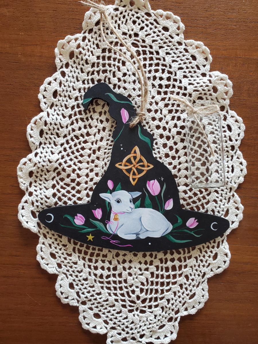 Décoration magique fanion à accrocher, peinture sur bois à l’acrylique, 10-14 cm de hauteur environ.