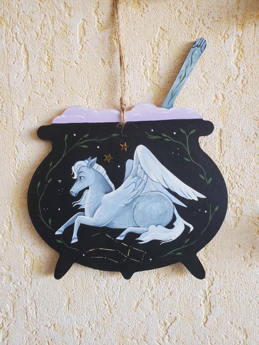 Décoration à accrocher, peinture sur bois à l’acrylique, 13 cm de hauteur environ.